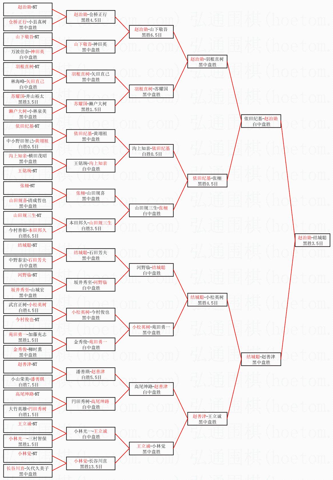 1.赵治勋获得冠军,结城聪获得亚军。决赛比分:赵治勋1:0结城聪。棋局:
