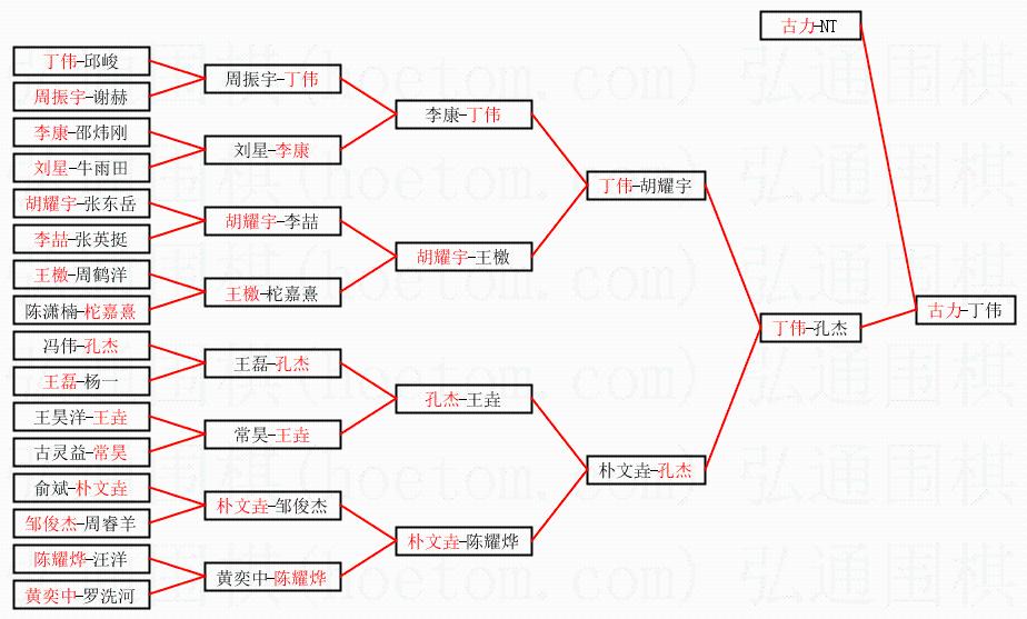 1.古力获得冠军,丁伟获得亚军。决赛比分:古力3:0丁伟。棋局: