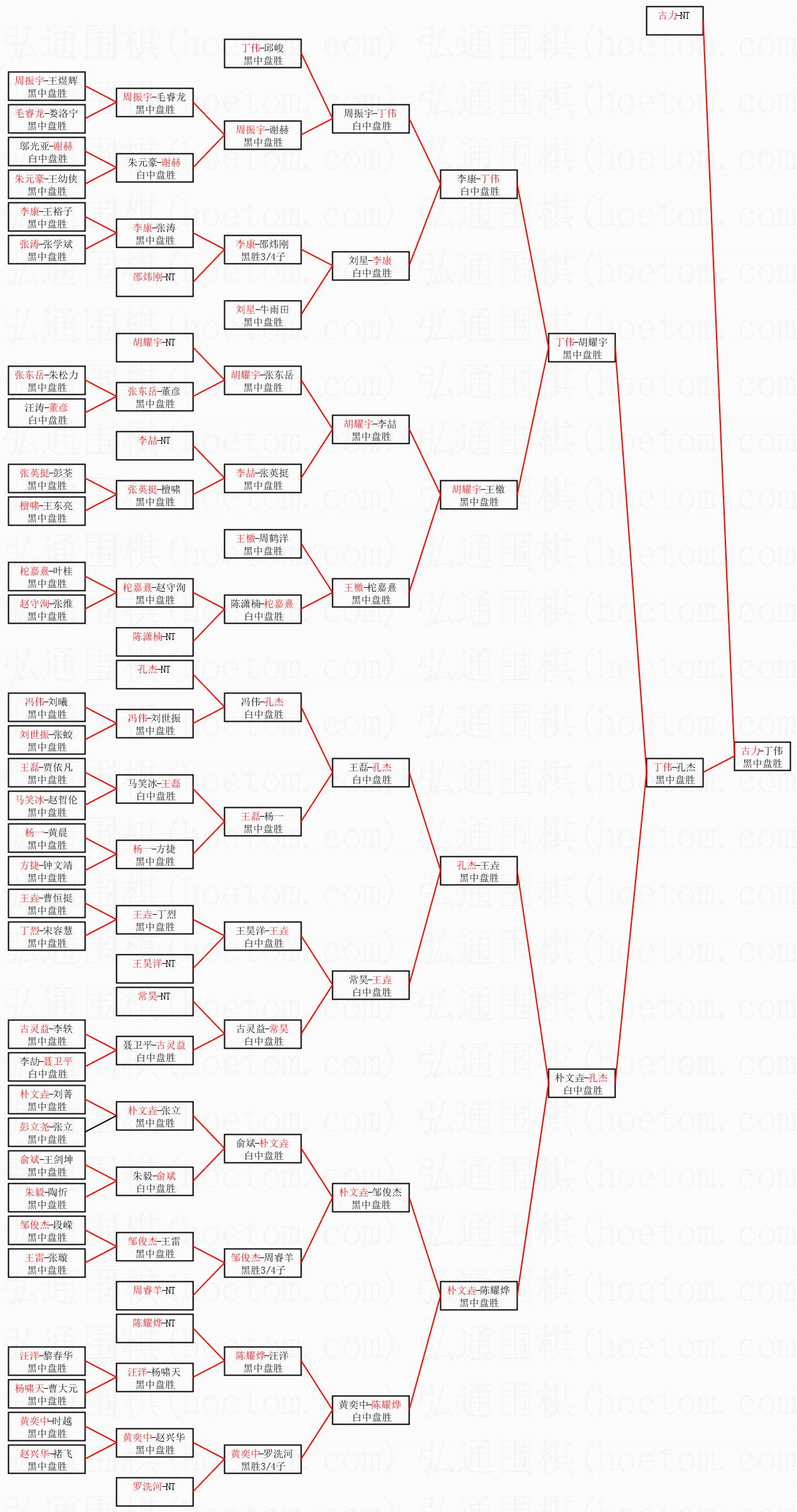 | 1.古力获得冠军,丁伟获得亚军。决赛比分:古力3:0丁伟。棋局: | ||