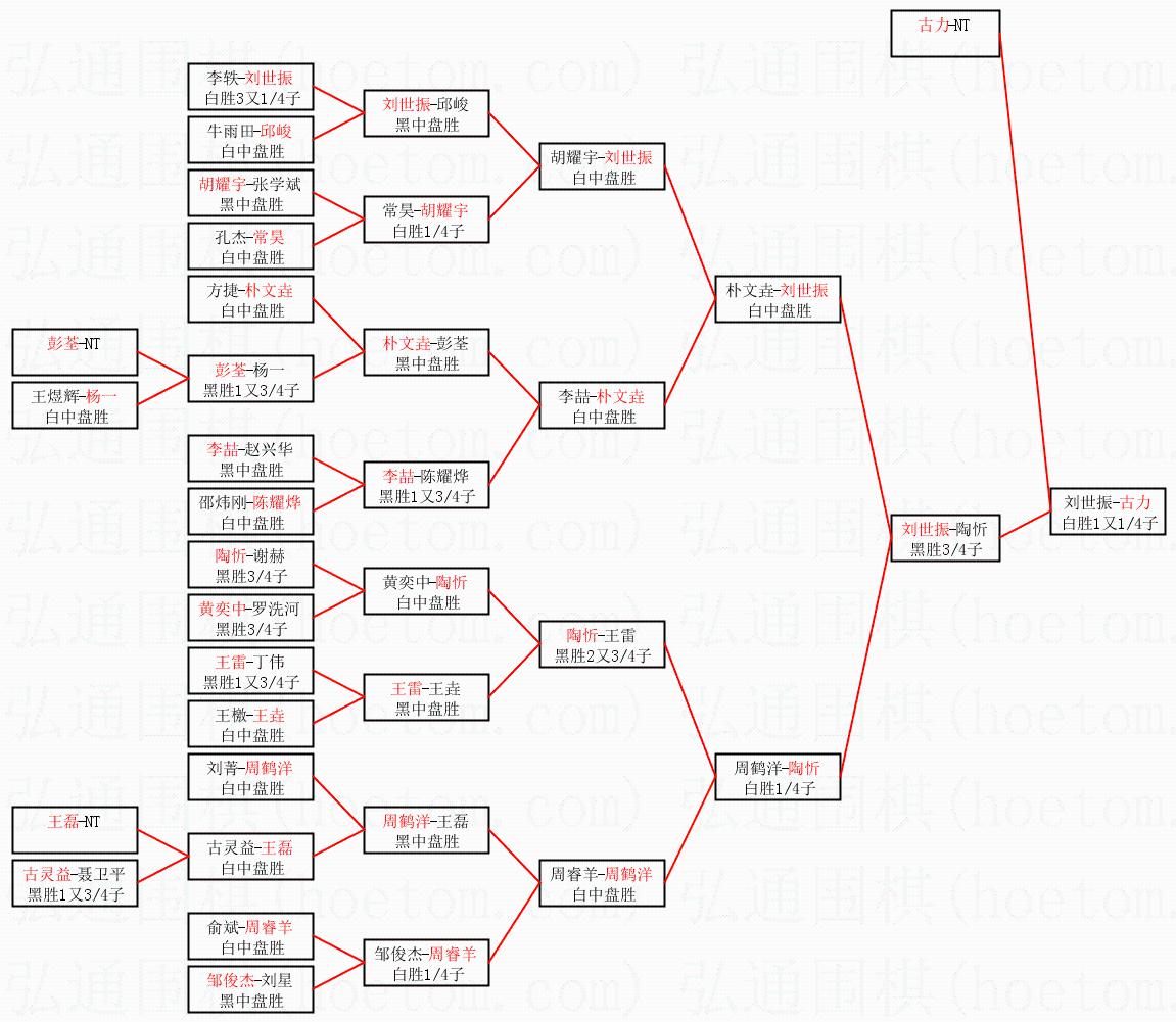1.古力获得冠军,刘世振获得亚军。决赛比分:古力2:1刘世振。棋局: