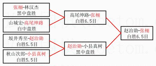 2.上半区半决赛张栩获胜, 比分:张栩 1:0 高尾绅路。棋局: