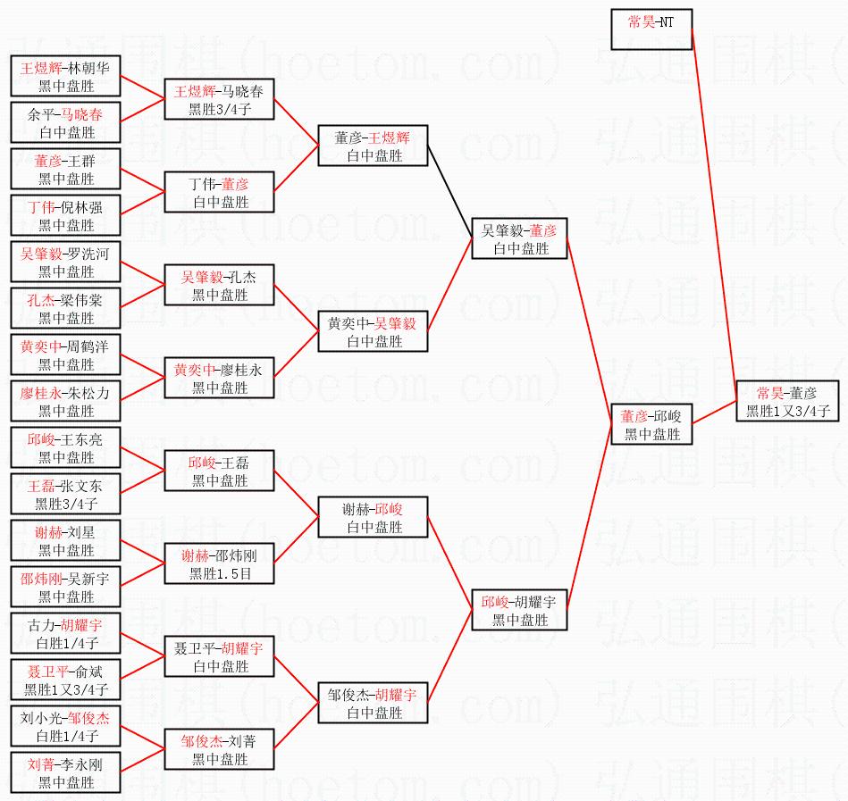 | 1.常昊获得冠军,董彦获得亚军。决赛比分:常昊3:1董彦。棋局: | ||