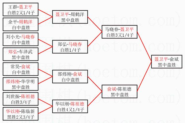 1.聂卫平获得冠军,俞斌获得亚军。决赛比分:聂卫平1:0俞斌。棋局: