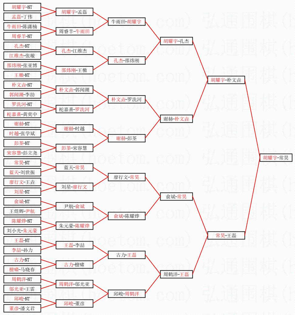 2.上半区半决赛胡耀宇获胜, 比分:胡耀宇 1:0 朴文垚。棋局: