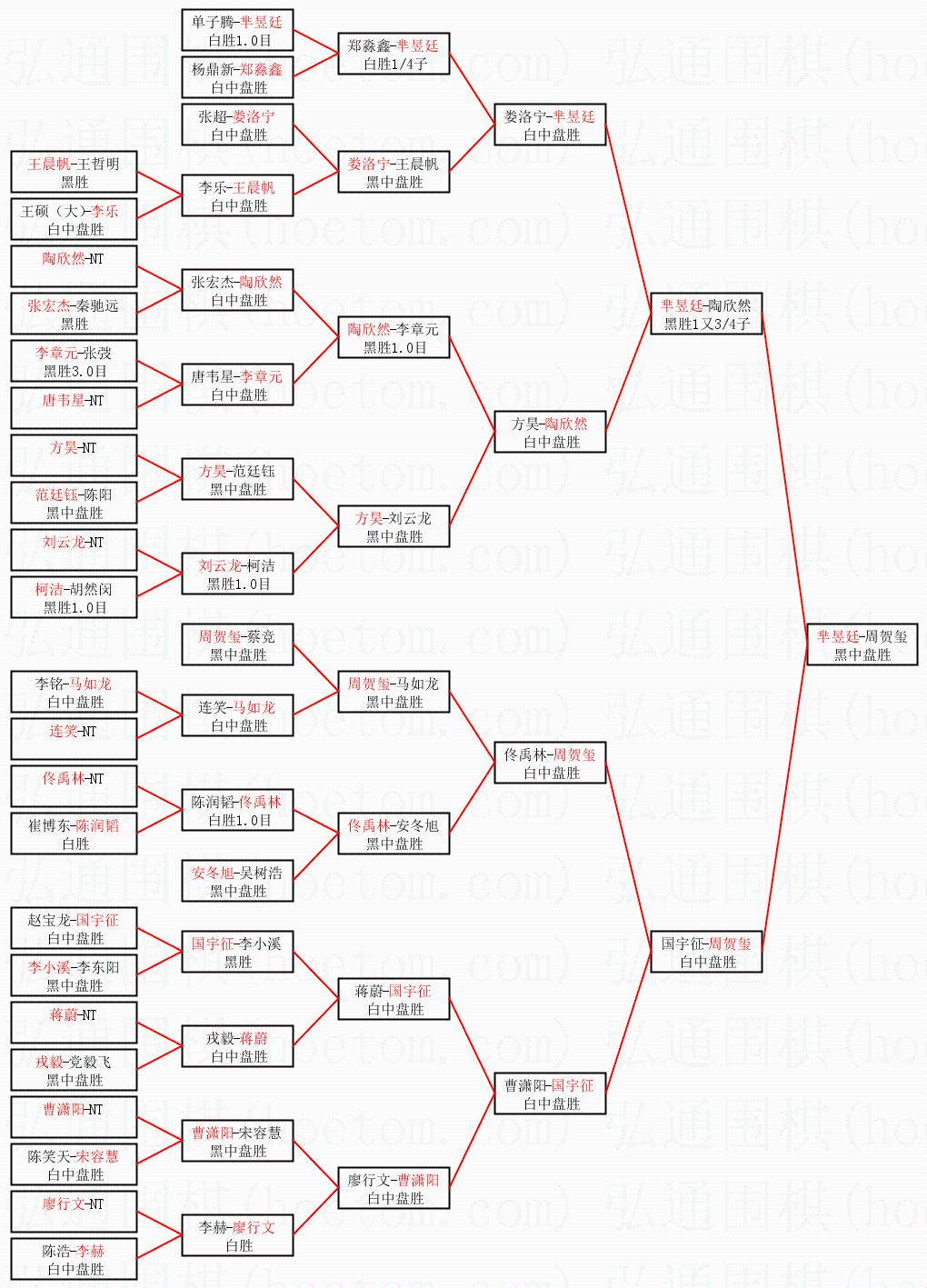 2.上半区半决赛芈昱廷获胜, 比分:芈昱廷 1:0 陶欣然。棋局: