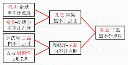 2.上半区半决赛孔杰获胜, 比分:孔杰 1:0 常昊。棋局: