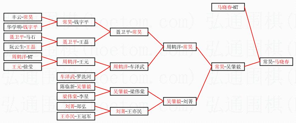 | 1.马晓春获得冠军,常昊获得亚军。决赛比分:马晓春3:2常昊。棋局: | ||
