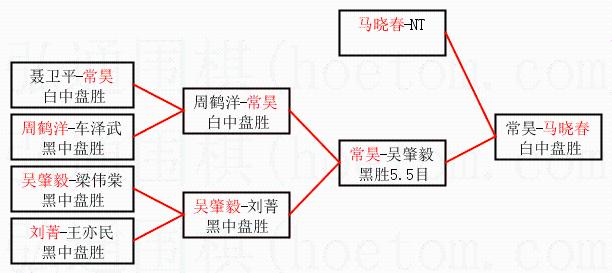 | 1.马晓春获得冠军,常昊获得亚军。决赛比分:马晓春3:2常昊。棋局: | ||