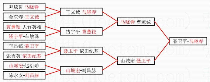 | 2.上半区半决赛马晓春获胜, 比分:马晓春 2:1 曹薰铉。棋局: | ||