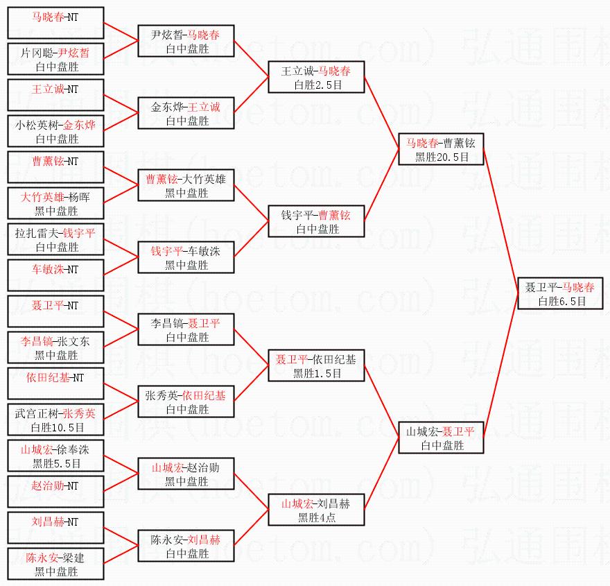 | 2.上半区半决赛马晓春获胜, 比分:马晓春 2:1 曹薰铉。棋局: | ||