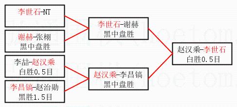 3.下半区半决赛赵汉乘获胜,比分:赵汉乘1:0李昌镐。棋局: