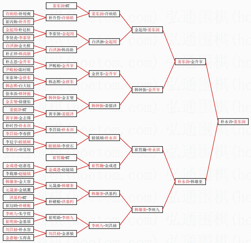 1.姜东润获得冠军,朴永训获得亚军。决赛比分:姜东润2:0朴永训。棋局: