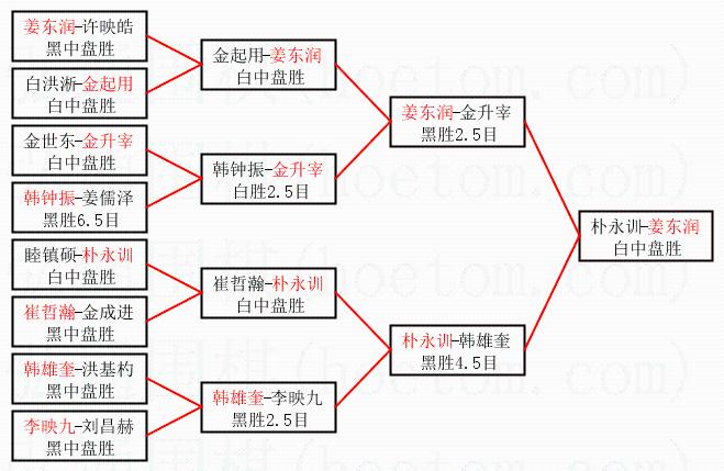 | 1.姜东润获得冠军,朴永训获得亚军。决赛比分:姜东润2:0朴永训。棋局: | ||
