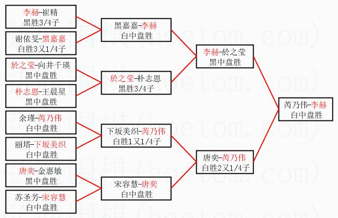 2.上半区半决赛李赫获胜, 比分:李赫 1:0 於之莹。棋局: