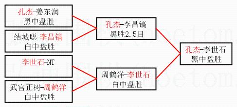 2.上半区半决赛孔杰获胜, 比分:孔杰 1:0 李昌镐。棋局: