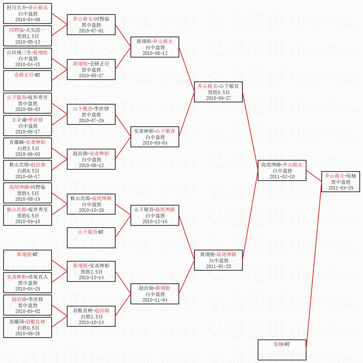 1.井山裕太获得冠军,张栩获得亚军。决赛比分:井山裕太3:2张栩。棋局: