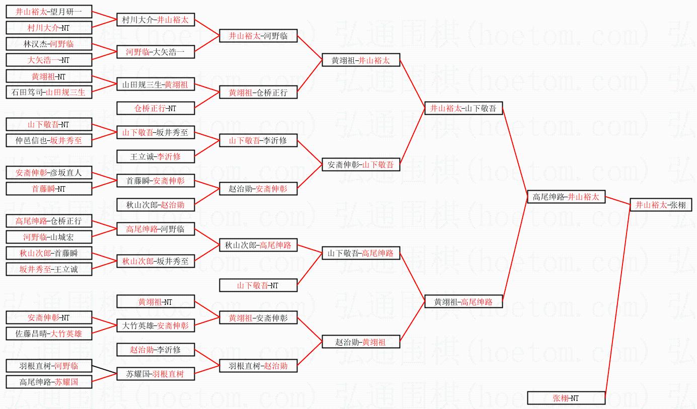 1.井山裕太获得冠军,张栩获得亚军。决赛比分:井山裕太3:2张栩。棋局: