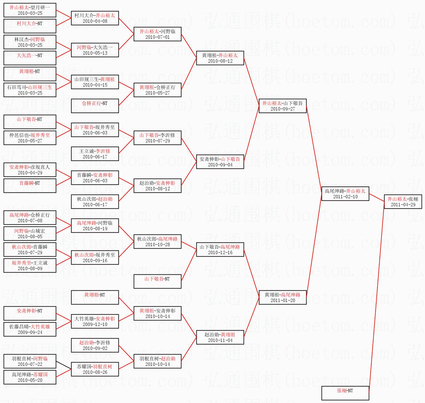 1.井山裕太获得冠军,张栩获得亚军。决赛比分:井山裕太3:2张栩。棋局: