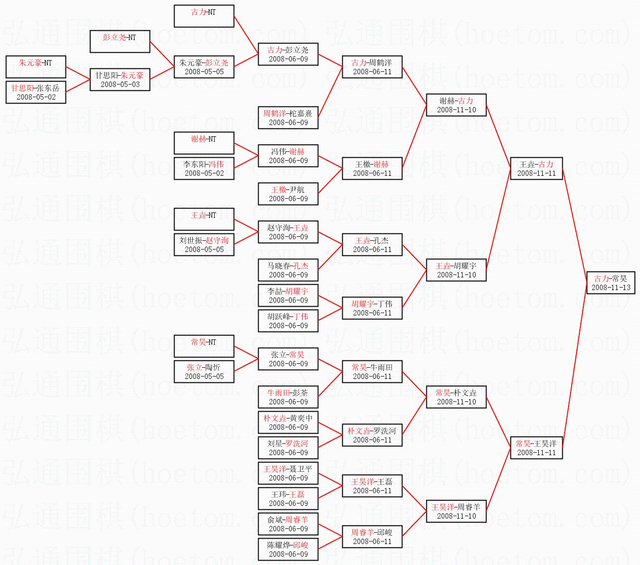 1.古力获得冠军,常昊获得亚军。决赛比分:古力1:0常昊。棋局: