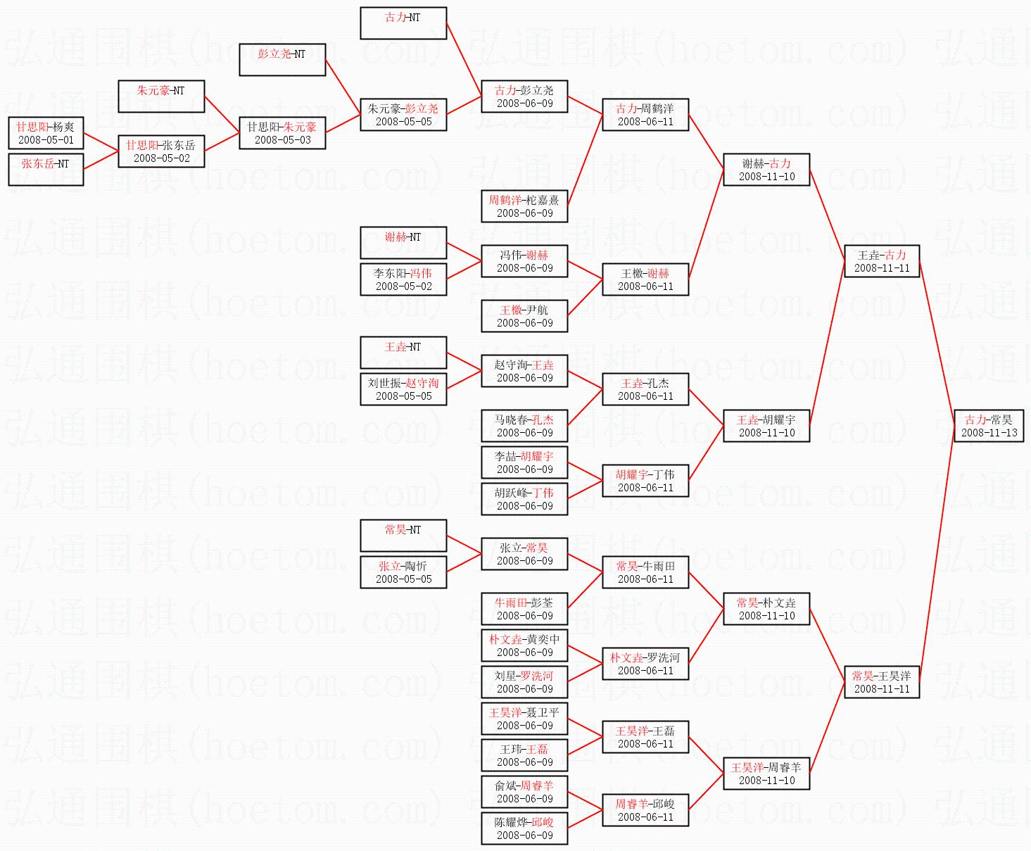 1.古力获得冠军,常昊获得亚军。决赛比分:古力1:0常昊。棋局:
