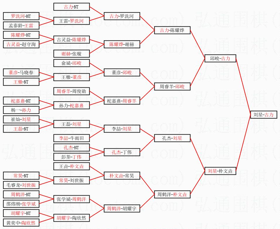 | 1.古力获得冠军,刘星获得亚军。决赛比分:古力2:1刘星。棋局: | ||