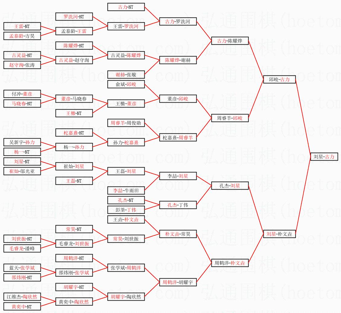 | 1.古力获得冠军,刘星获得亚军。决赛比分:古力2:1刘星。棋局: | ||