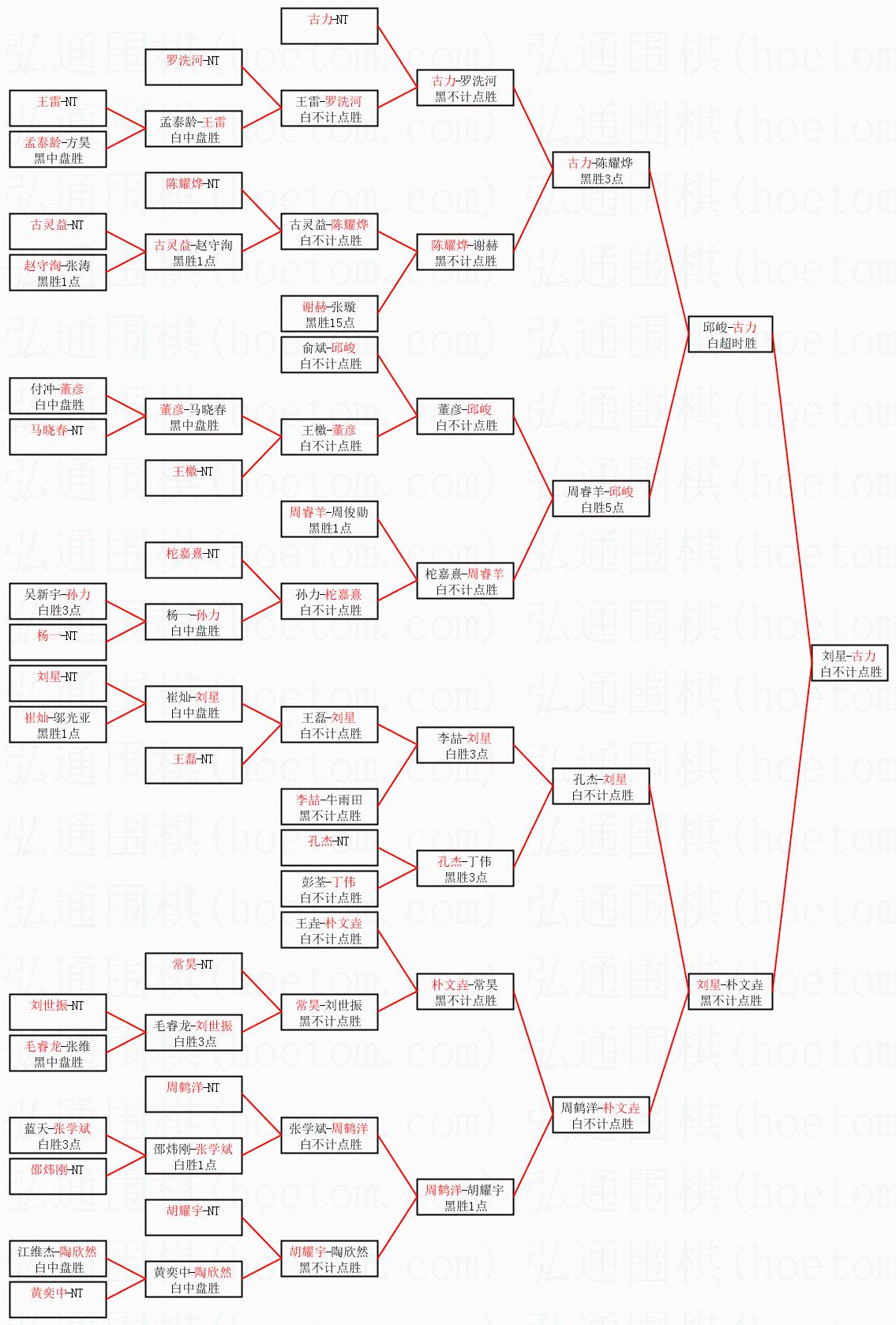 | 1.古力获得冠军,刘星获得亚军。决赛比分:古力2:1刘星。棋局: | ||