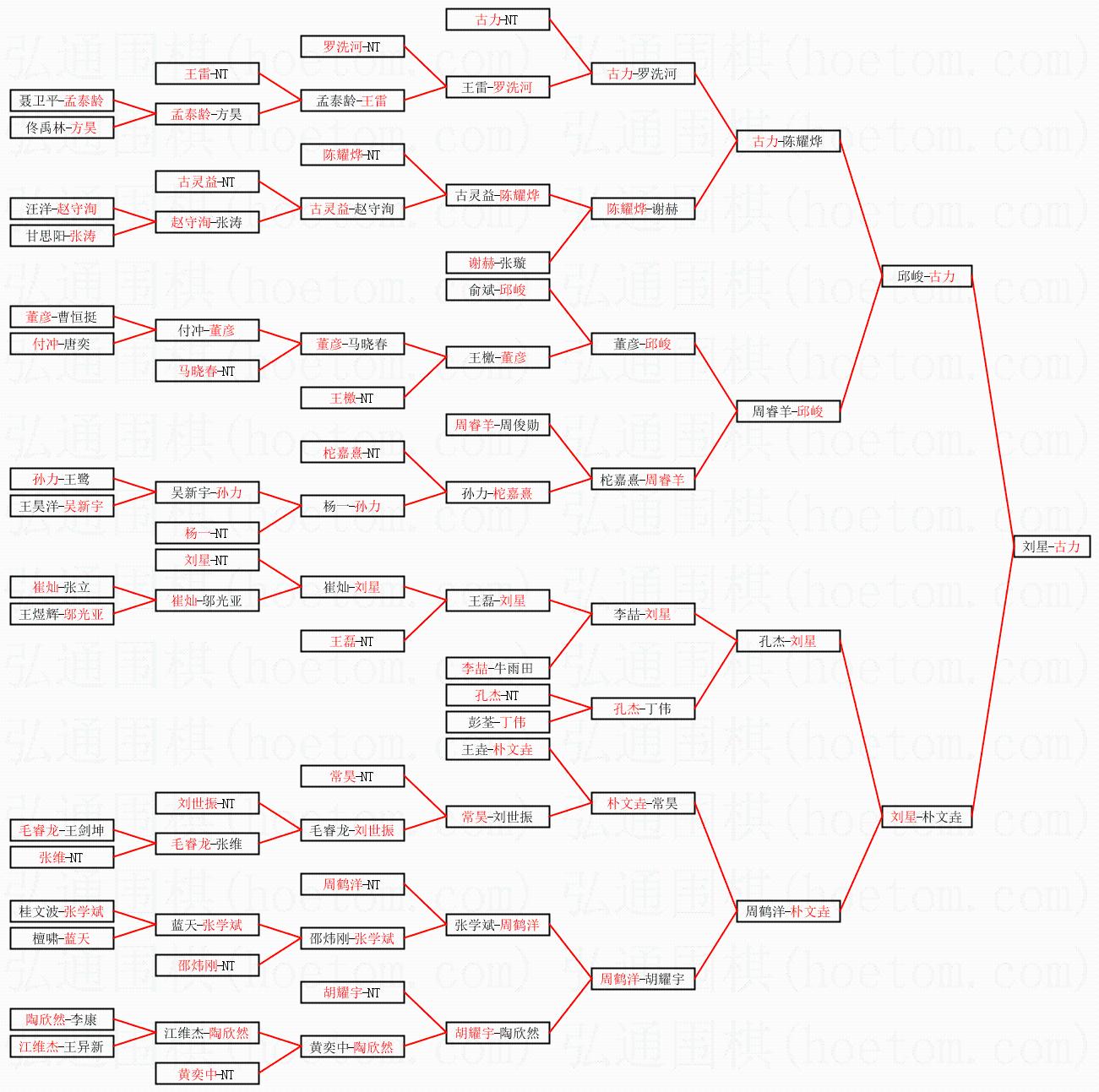 | 1.古力获得冠军,刘星获得亚军。决赛比分:古力2:1刘星。棋局: | ||