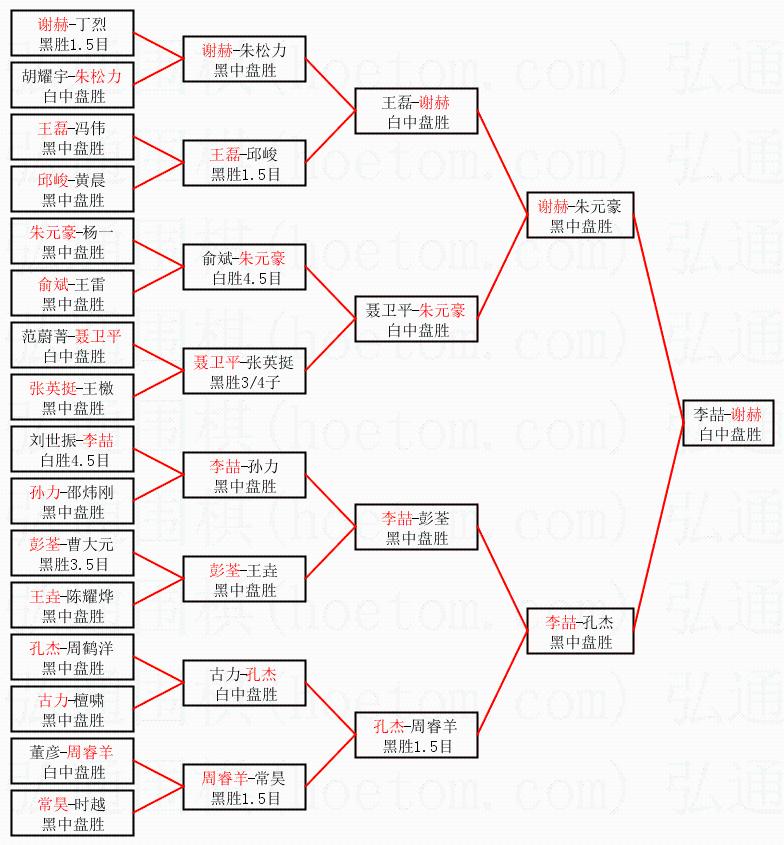 1.谢赫获得冠军,李喆获得亚军。决赛比分:谢赫1:0李喆。棋局: