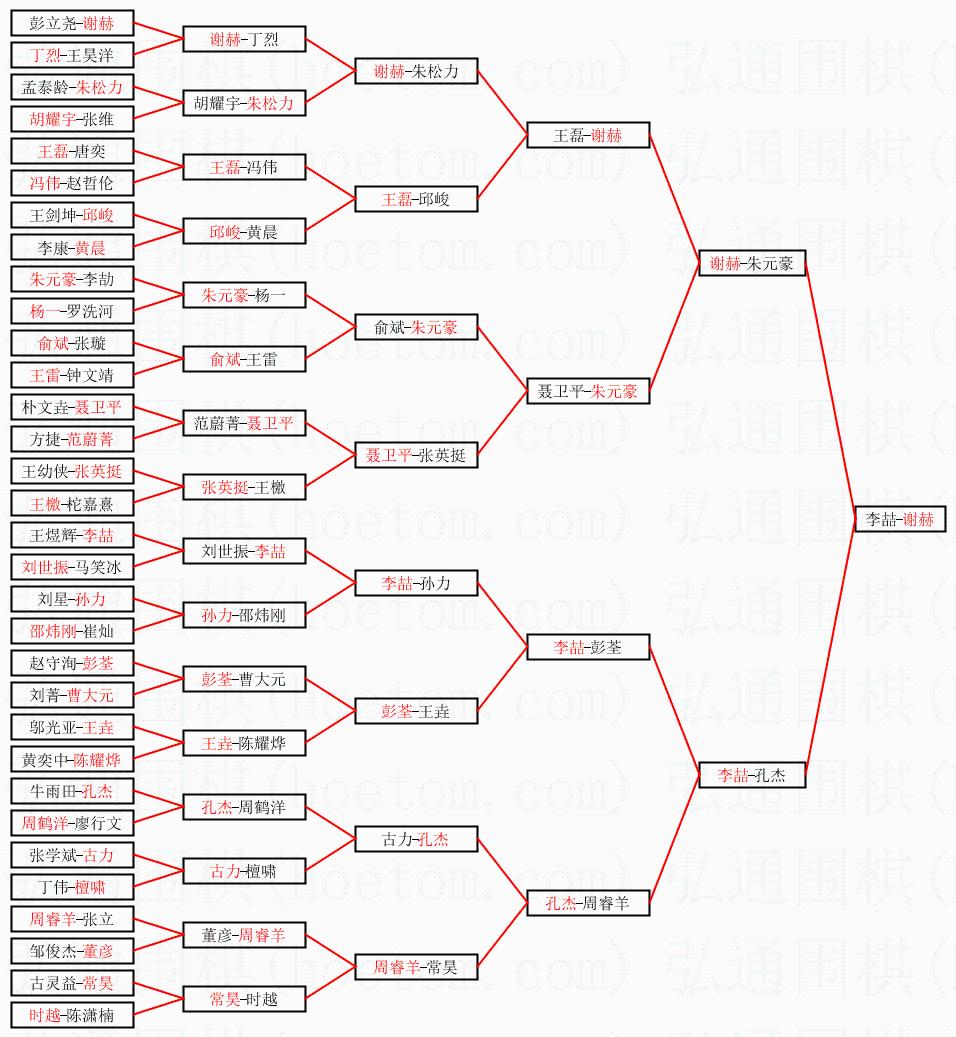 1.谢赫获得冠军,李喆获得亚军。决赛比分:谢赫1:0李喆。棋局: