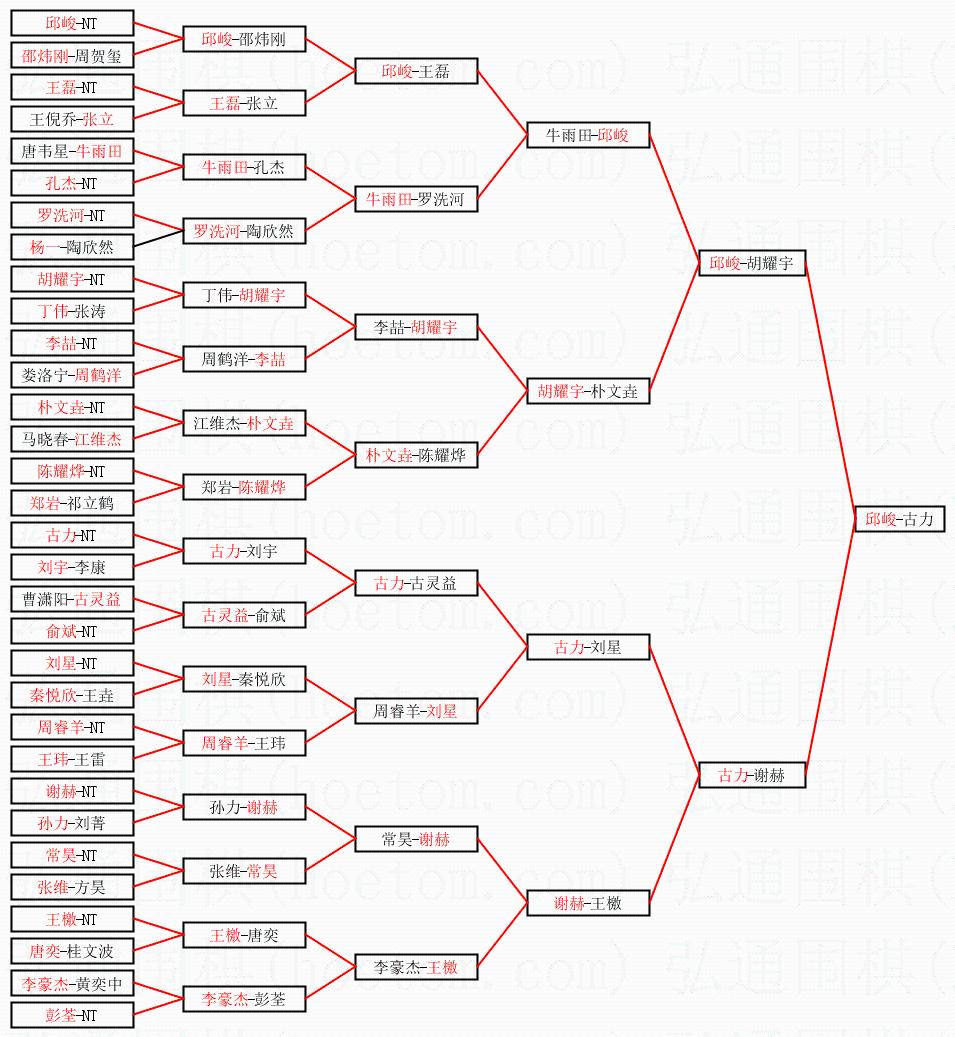 1.邱峻获得冠军,古力获得亚军。决赛比分:邱峻1:0古力。棋局: