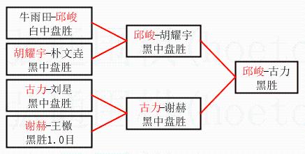 1.邱峻获得冠军,古力获得亚军。决赛比分:邱峻1:0古力。棋局:
