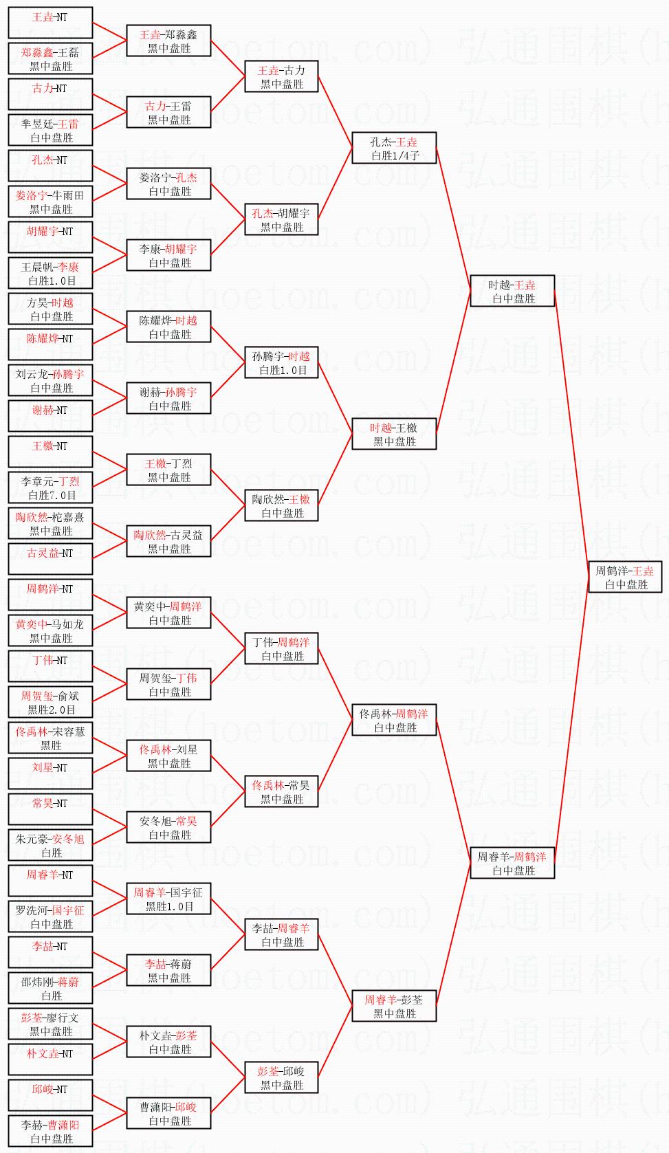 1.王垚获得冠军,周鹤洋获得亚军。决赛比分:王垚1:0周鹤洋。棋局: