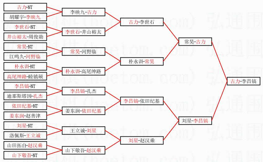 | 1.古力获得冠军,李昌镐获得亚军。决赛比分:古力1:0李昌镐。棋局: | ||