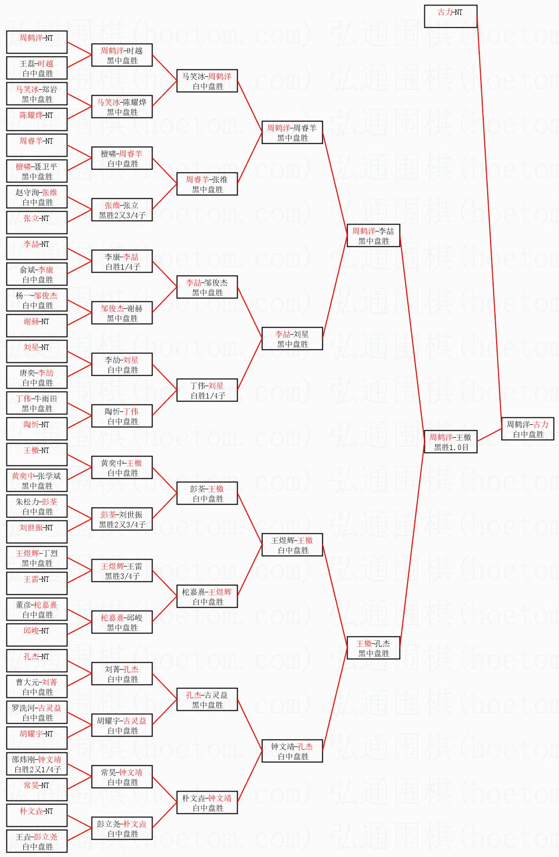 1.古力获得冠军,周鹤洋获得亚军。决赛比分:古力2:1周鹤洋。棋局: