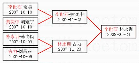 3.下半区半决赛朴永训获胜,比分:朴永训2:1古力。棋局: