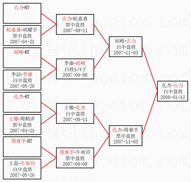 1.古力获得冠军,孔杰获得亚军。决赛比分:古力1:0孔杰。棋局: