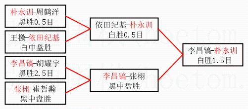1.朴永训获得冠军,李昌镐获得亚军。决赛比分:朴永训1:0李昌镐。棋局: