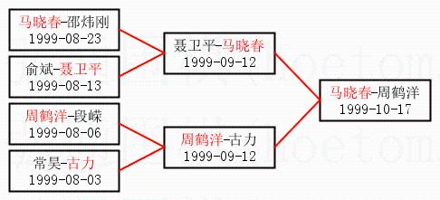1.马晓春获得冠军,周鹤洋获得亚军。决赛比分:马晓春1:0周鹤洋。棋局:
