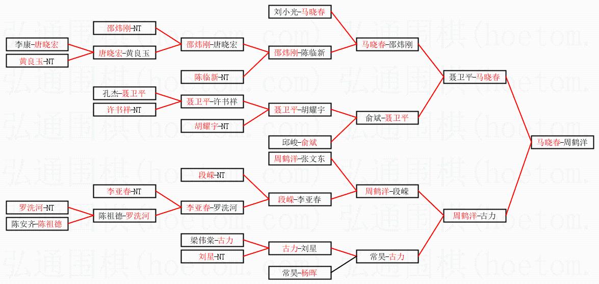 1.马晓春获得冠军,周鹤洋获得亚军。决赛比分:马晓春1:0周鹤洋。棋局: