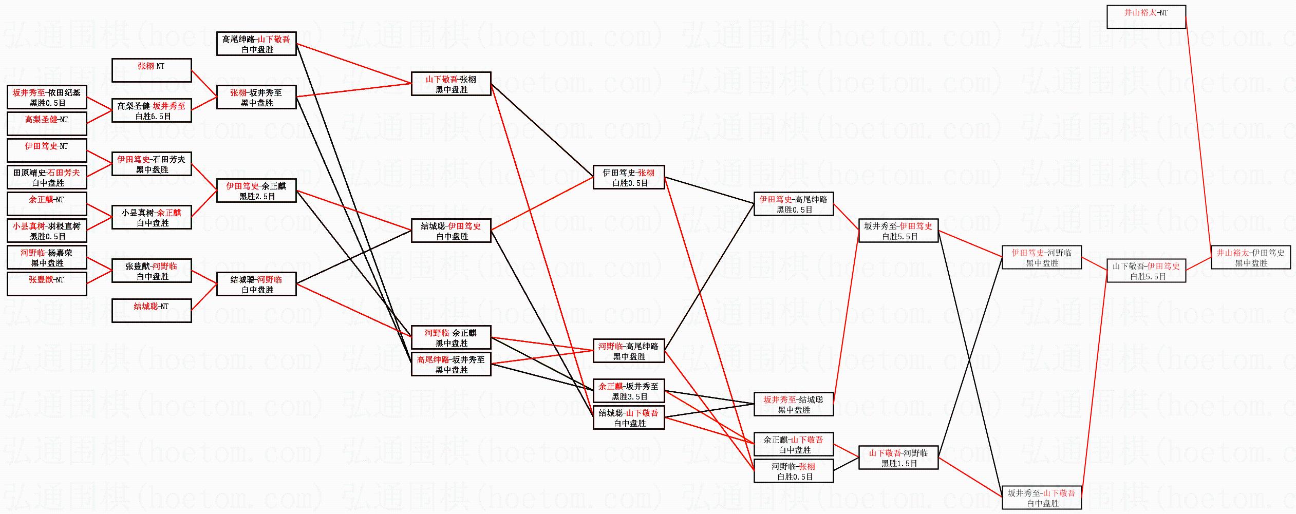 1.井山裕太获得冠军,伊田笃史获得亚军。决赛比分:井山裕太4:1伊田笃史。棋局: