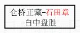 1.石田章获得冠军,仓桥正藏获得亚军。决赛比分:石田章2:1仓桥正藏。棋局: