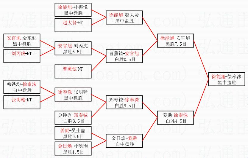 1.徐能旭获得冠军,徐奉洙获得亚军。决赛比分:徐能旭1:0徐奉洙。棋局: