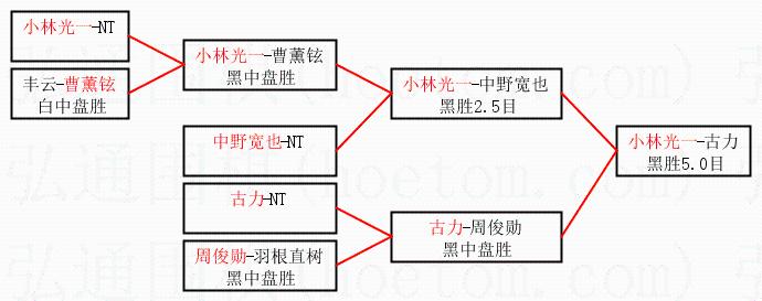 2.上半区半决赛小林光一获胜, 比分:小林光一 1:0 中野宽也。棋局: