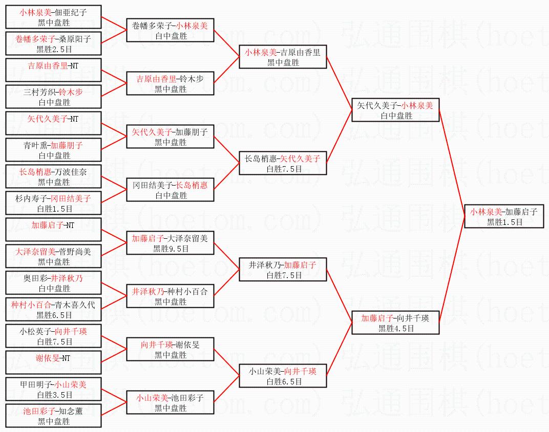 | 1.小林泉美获得冠军,加藤启子获得亚军。决赛比分:小林泉美1:0加藤启子。棋局: | ||