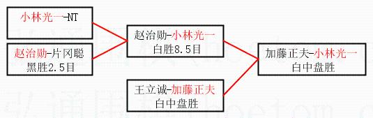 2.上半区半决赛小林光一获胜, 比分:小林光一 1:0 赵治勋。棋局: