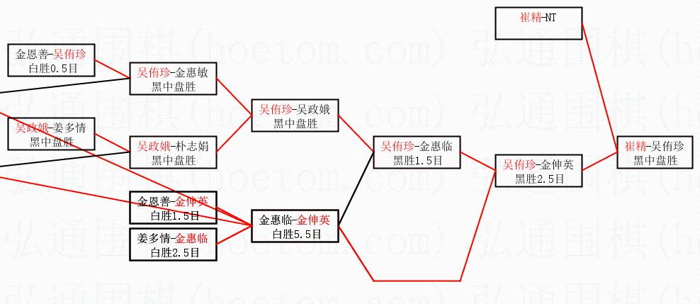 3.下半区半决赛吴侑珍获胜,比分:吴侑珍1:0金伸英。棋局: