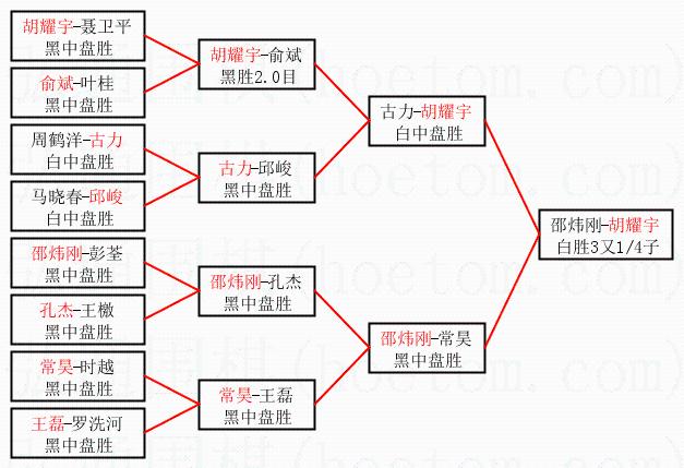 | 1.胡耀宇获得冠军,邵炜刚获得亚军。决赛比分:胡耀宇2:0邵炜刚。棋局: | ||