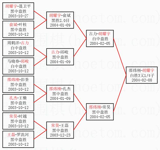 | 2004-02-08 邵炜刚-胡耀宇 白胜3又1/4子 | ||