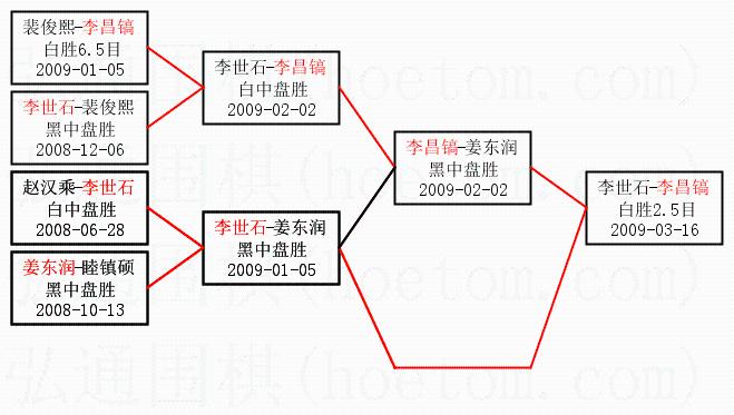 1.李昌镐获得冠军,李世石获得亚军。决赛比分:李昌镐2:1李世石。棋局: